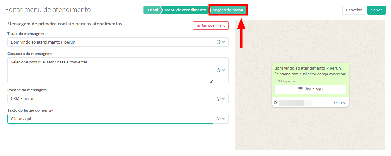 Pronto! Agora você já sabe como configurar o menu de primeiro atendimento.