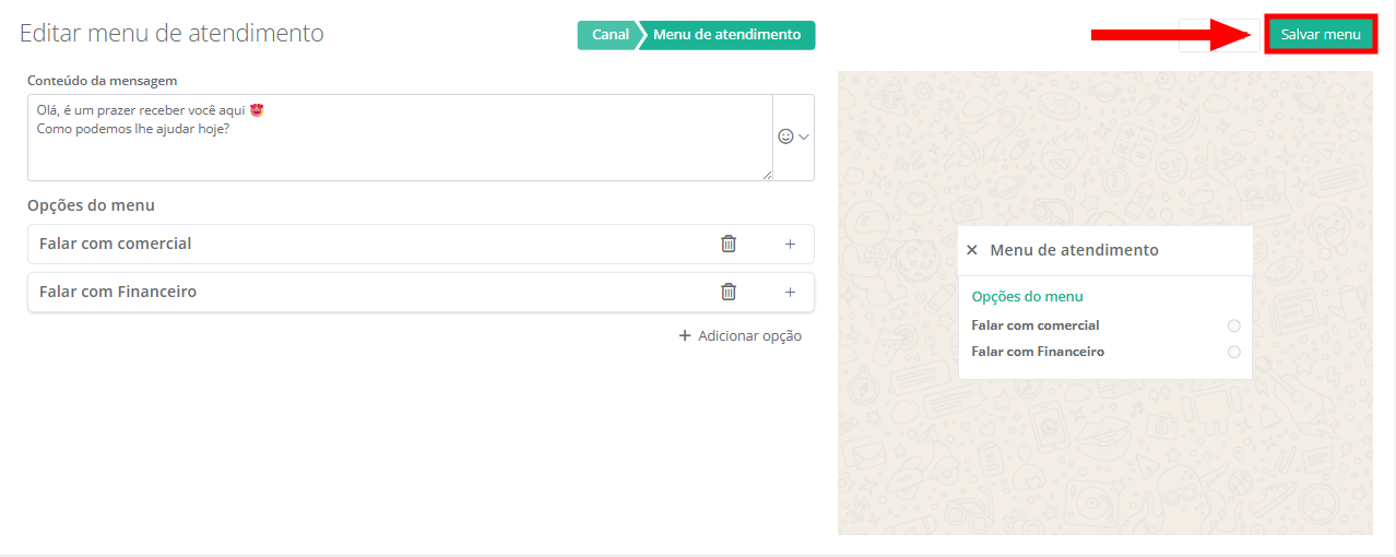 Pronto! Agora você já criou o menu de primeiro atendimento.