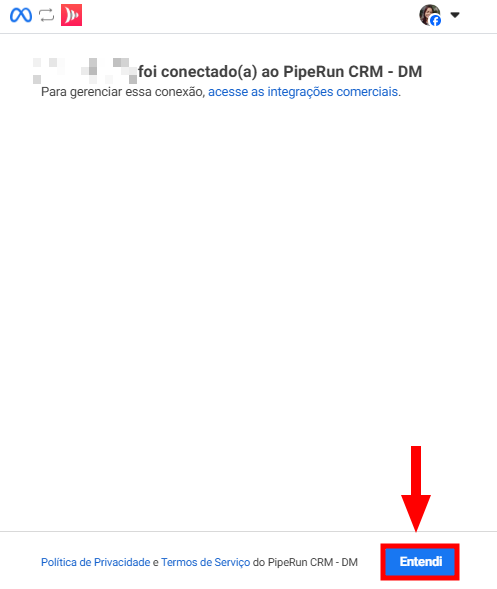 14. Clique em "Entendi" e retorne para a tela do CRM de Vendas PipeRun.