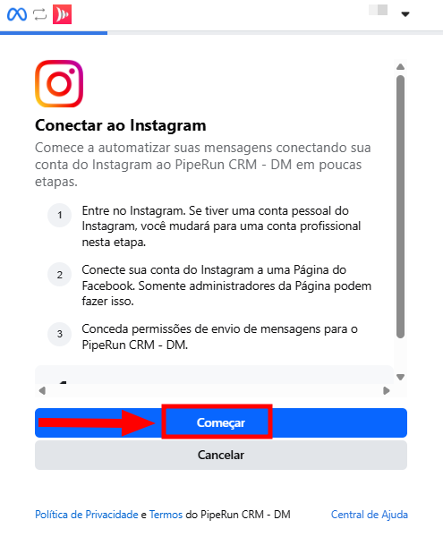 COMO CONECTAR O INSTAGRAM AO MÓDULO DE ATENDIMENTO