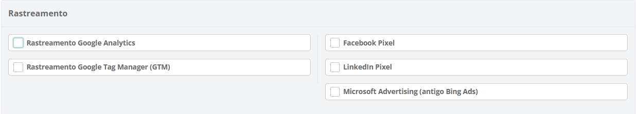 É possível informar códigos e IDs de rastreamento conforme opções abaixo: