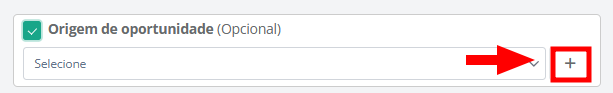 - Origem de oportunidade: caso deseje informar uma origem para as oportunidades, marque esta opção. Selecione na listagem uma origem para as oportunidades.
