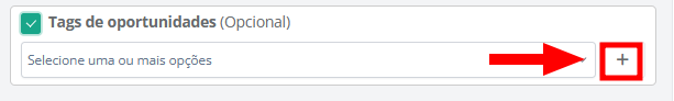 - Funil e etapa das oportunidades (obrigatório): escolha em qual funil de vendas e em qual etapa do funil as oportunidades serão cadastradas, por exemplo: "Funil - Pré-vendas (SDR) → Entrada novo Lead." Isso garante que o lead entre direto no fluxo correto para ser trabalhado.