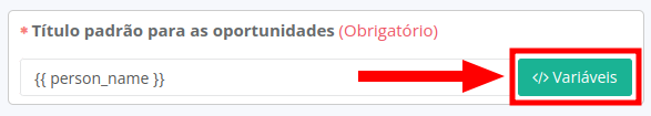 - Título padrão para as oportunidades (obrigatório): defina o nome que cada oportunidade terá ao ser criada por e exemplo da “Vendas Recorrentes {{ person_name }}”.
