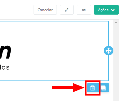 Para remover um bloco de conteúdo, basta clicar em cima e selecionar o ícone de lixeira.