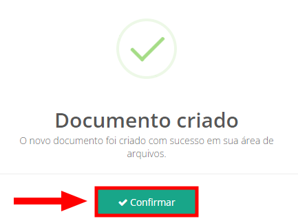 3. Após realizar a etapa anterior, uma janela com a mensagem confirmando a criação do documento aparecerá na tela. Clique em "Confirmar".
