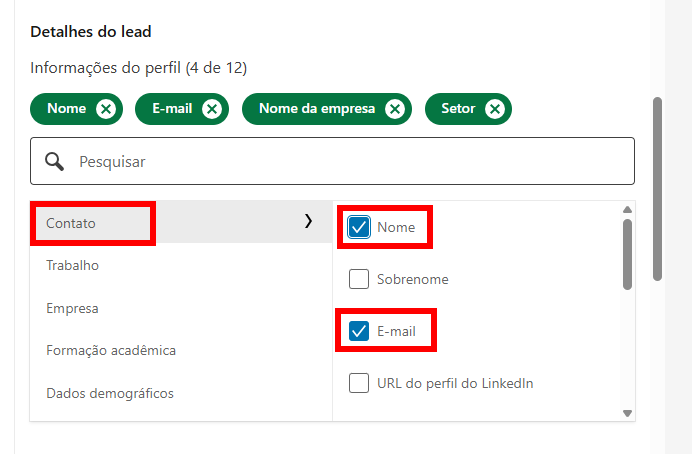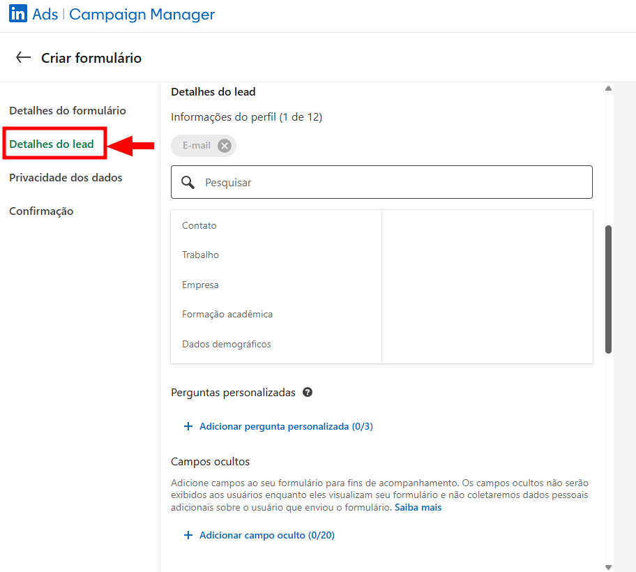 5. Clique em "Detalhes do Lead" para personalizar os campos deste formulário.