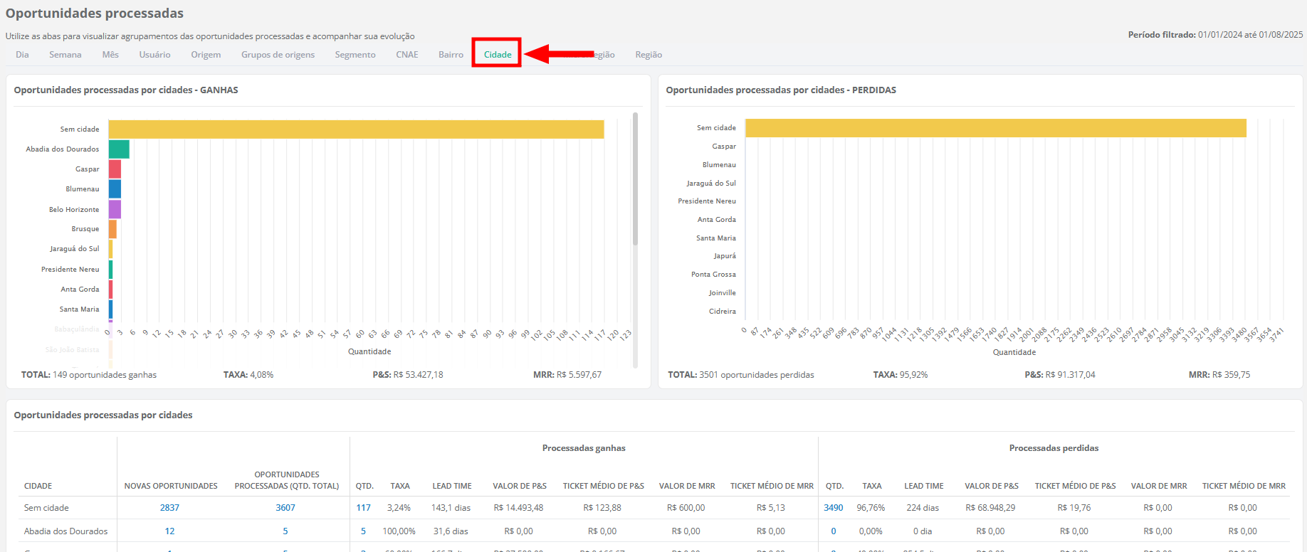 Cidade: mostra a quantidade de oportunidades por cidade;