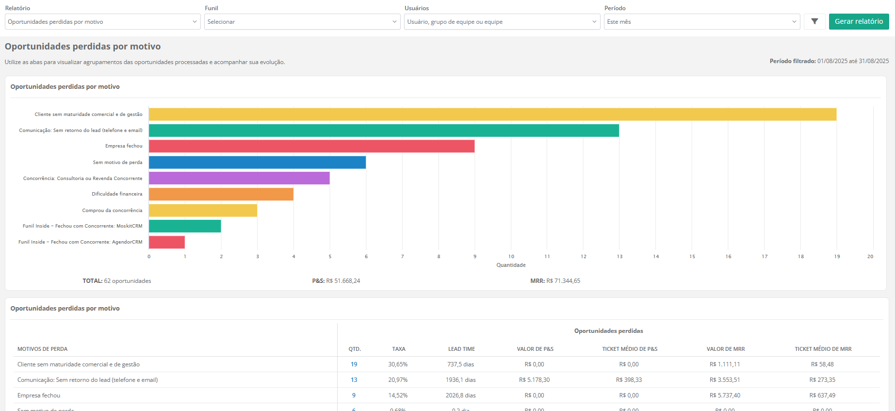 Para saber mais sobre o relatório de oportunidades perdidas por motivo, acesse este artigo.