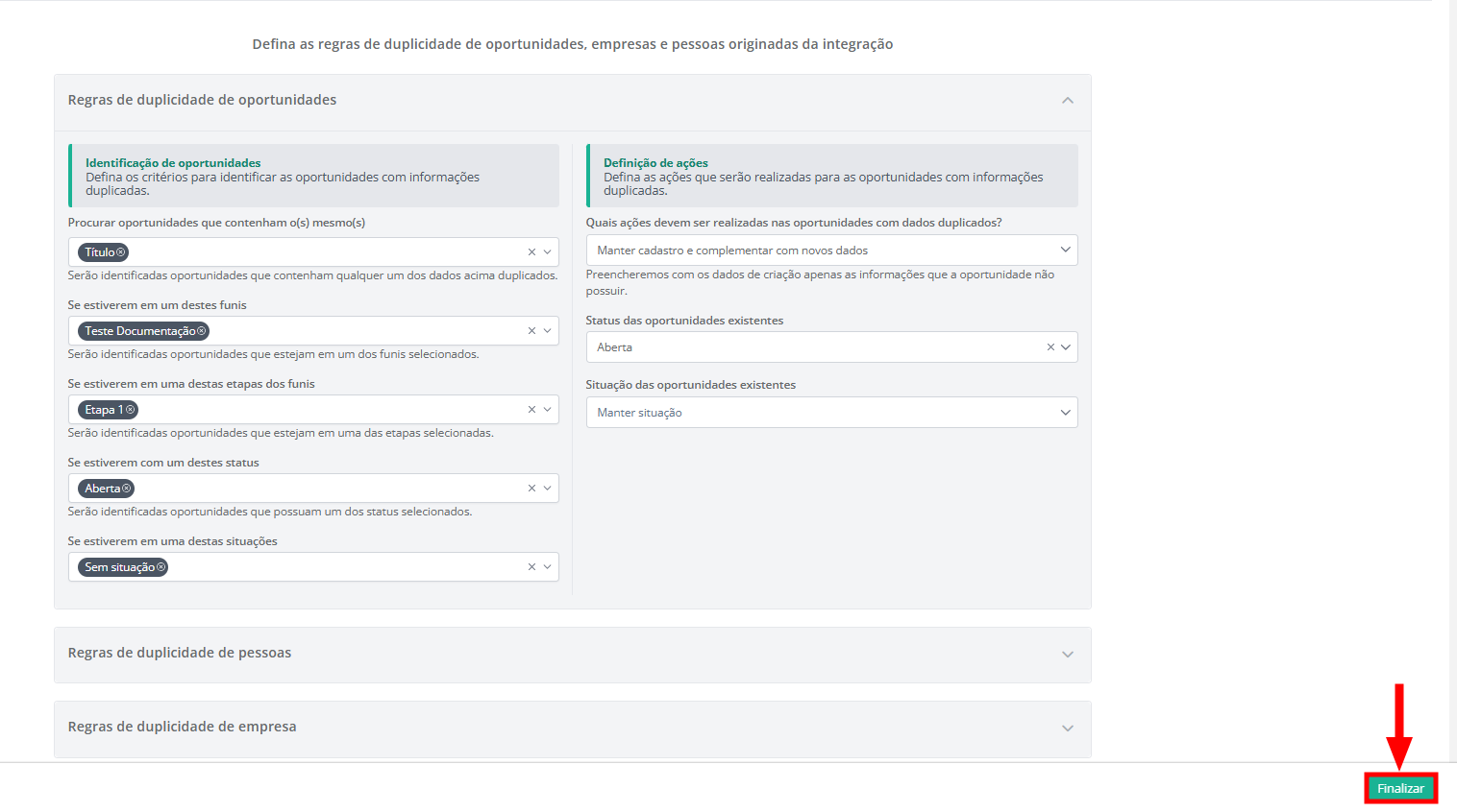 Regras de duplicidade das oportunidades