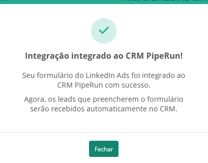 Pronto! A integração com os formulários das campanhas do LinkedIn ADS foi finalizada.