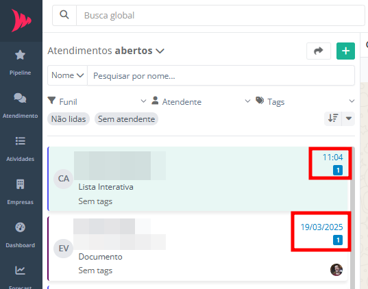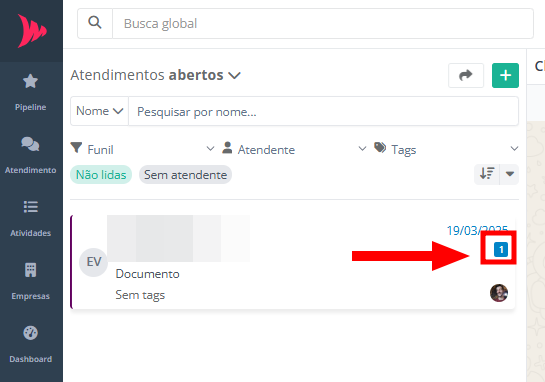 Dica: os atendimento com conversas não lidas serão exibidos como primeiros atendimentos na listagem de atendimentos abertos.