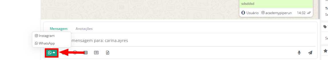 Dica: se o atendimento for iniciado pelo Instagram, é possível migrar a conversa para o canal do WhatsApp. Já quando o atendimento começa pelo WhatsApp, a troca para o Instagram só será permitida se o cliente tiver iniciado a conversa com a empresa também por esse canal.
