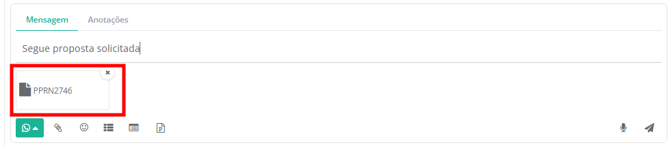 1. Na tela do atendimento clique no ícone para enviar proposta.