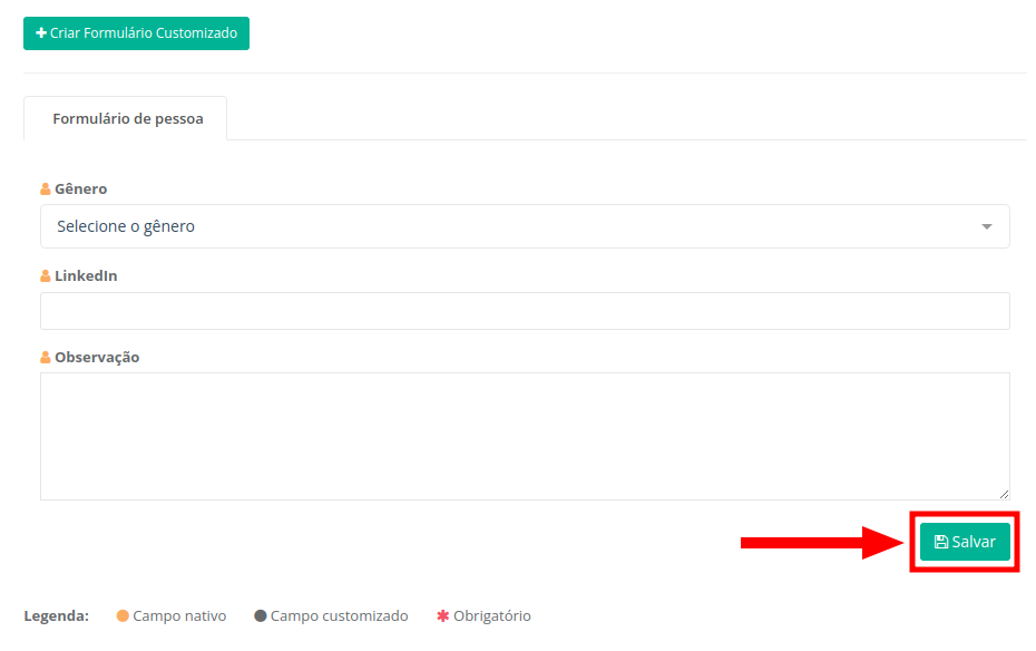 2. Em Campos customizados são exibidos os campos customizados vinculados à pessoa.