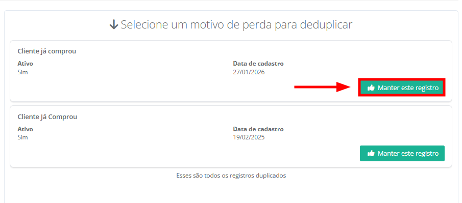 Pronto! Ao clicar em confirmar, será mantida a oportunidade selecionada e as demais serão excluídas.