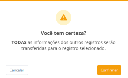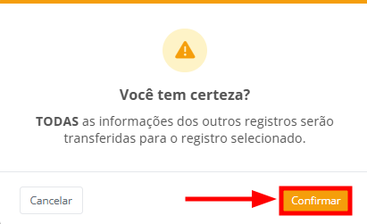 Este sistema não realiza a mesclagem de informações. Ao confirmar: