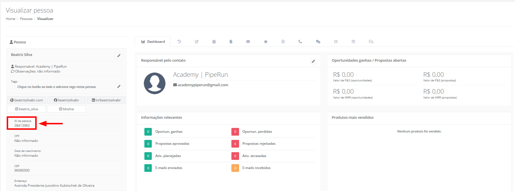 Dica: o ID da pessoa fica localizado logo abaixo do seu nome na tela de visualizar pessoa.