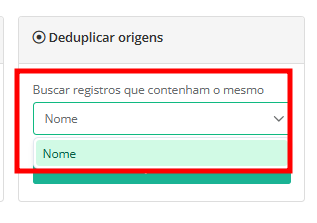 4. Selecione o critério pelo qual o sistema fará uma busca para encontrar eventuais duplicidades. As opções de critérios de duplicidades para o cadastro de Origem é o "Nome".