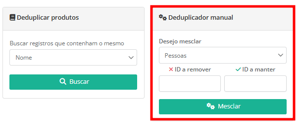 Assim, com o deduplicador manual, você mesmo poderá mesclar cadastros que não seriam encontrados pelas opções de busca da funcionalidade.