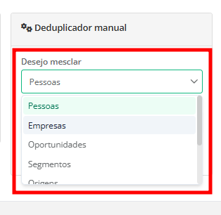 Você pode utilizar esta ferramenta para remover duplicidades de cadastros de Pessoas, Empresas, Oportunidades, Segmentos, Origens, Motivos de perda, tags e Produtos repetidos.