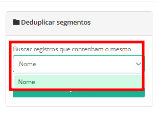 4. Selecione o critério pelo qual o sistema fará uma busca para encontrar eventuais duplicidades. As opções de critérios de duplicidades para o cadastro de segmento é o "Nome".