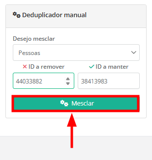 5. Após informar os IDs, clique em "Mesclar".