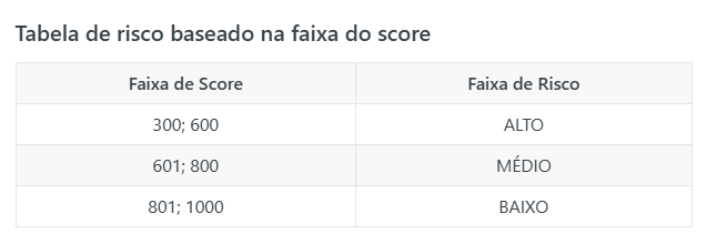 14. Quando o gatilho configurado disparar a ação automática, os campos customizados serão automaticamente preenchidos com dados que descrevem o histórico de crédito da pessoa ou empresa. O sistema devolve uma pontuação numérica que vai de 300 a 1000: valores próximos de 300 indicam alto risco de inadimplência, enquanto pontuações próximas de 1000 sinalizam baixo risco.