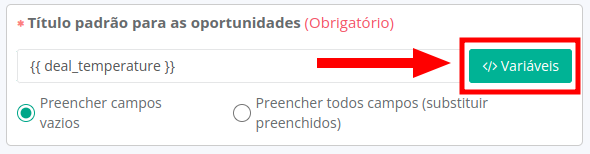 Dica: é possível utilizar variáveis no título das oportunidades. Para saber mais sobre o que são e as formas de uso das variáveis, acesse este artigo. As variáveis disponíveis serão o número da linha da planilha e os campos nativos e/ou customizados mapeados na etapa anterior.