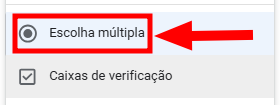 2. Na configuração de perguntas, utilizar SOMENTE a opção "Múltipla escolha". Dados oriundos de "caixas de seleção" não serão recebidos no PipeRun.