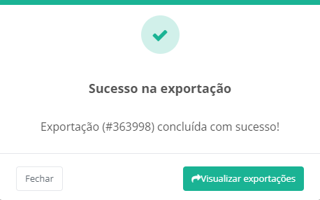 3. Será exibida em tela uma mensagem informando do da conclusão da exportação. Para acessar o arquivo, clique em "Visualizar exportações".
