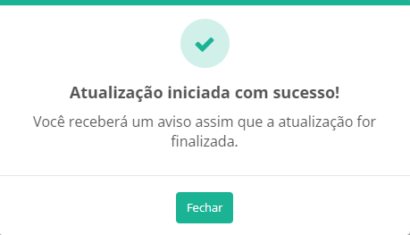 Quando a atualização for finalizada, você receberá uma notificação no sistema.