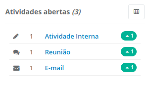 Neste bloco, são exibidas todas as atividades que estão abertas no período filtrado. É possível visualizar a quantidade por tipos de atividades.