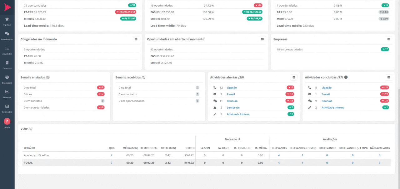 - Quantidade de novas oportunidades no(s) funil(is);