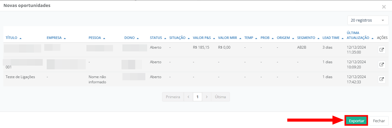 Neste bloco, são exibidas as oportunidades que estão abertas no momento, portanto, não se tratam de oportunidades que foram criadas ou reabertas no período aplicado no filtro.